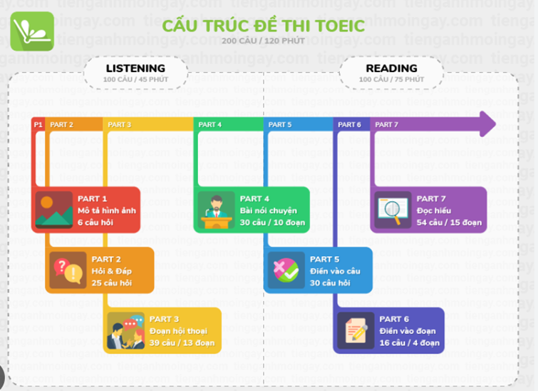 Phần cuối cùng của cấu trúc đề thi TOEIC 2 kỹ năng đó là phần đọc hiểu văn bản. Riêng phần này được chia thành 2 loại đó là: Đọc hiểu đoạn đơn và đọc hiểu nhiều đoạn.